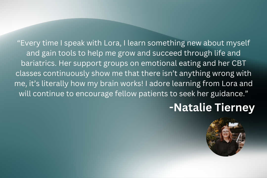 Using the knowledge and tools you learn you’ll be healthier, be present for your loved ones, show the world your true self, and improve other areas of your life you had no idea would be impacted by your weight loss journey!